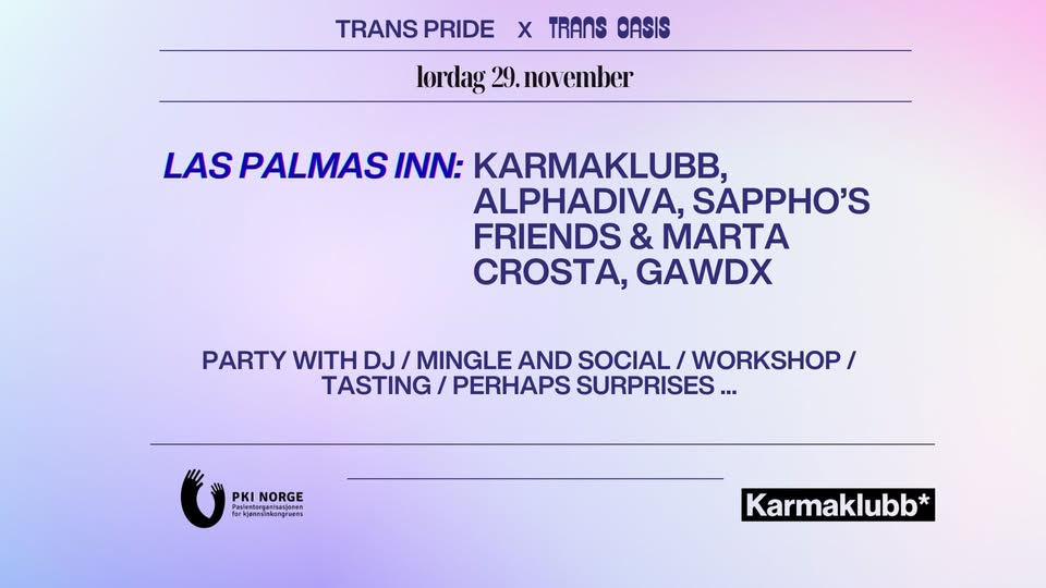 We warmly welcome you to no less than a two-day celebration — 29 and 30 November — on the occasion of Trans Pride 2025! A fluid programme — trans folks and allies, gathered from around the country and also abroad — consisting of workshops, to connect, printing, party, music, performance, drag, tasting ... Let's light up the last weekend of November. Come alone or with someone; we got a warm space for you all.